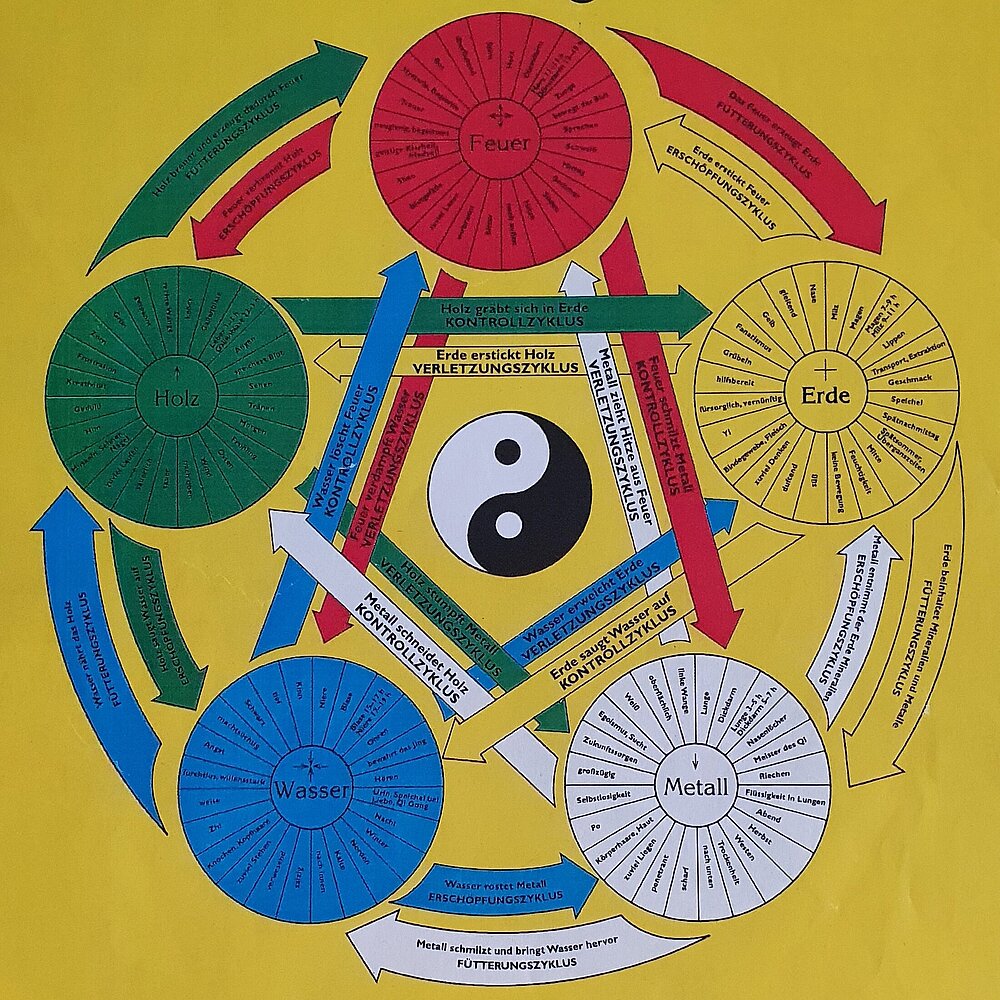In der Chinesischen Medizin (TCM) wird den 5 Elementen grosse Bedeutung beigemessen. Dieses Wissen fliesst auch in die Akupunktur-Massage nach Radloff mit ein. Das Ziel ist es, die 5 Elemente im Gleichgewicht zu halten. Hier spielt nicht nur das Wissen über die Akupunktur und die Akupunktur-Punkte eine Rolle sondern auch das Wissen über die Nahrungsmittel und deren energetischer Eigenschaften. Werden in einer Mahlzeit Zutaten aus allen 5 Elementen beigegeben, schmeckt das Essen besonders gut und ist bekömmlich. Eine Schwäche in einem der 5 Elemente kann deshalb auch über die Mahlzeit beeinflusst werden.