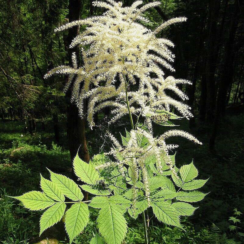 Der Geissbart (Aruncus dioicus, Aruncus sylvestris) vermag Umläufe zu heilen und Entzündungen zu lindern und wirkt adstringierend, beruhigend, fiebersenkend, Magenberuhigend und tonisierend. Anwendungen bei Venenleiden, Juckreiz, Insektenstiche, Fieber, Magenbeschwerden, Gelenkschmerzen, etc. Die Blütendolden (April-Juli) werden getrocknet und hiervon wird ein Aufguss (Tee) hergestellt, welcher nun für Umschläge, Sitzbäder, etc. verwendet werden kann. Die Pflanze enthält Blausäureverbindungen, Saponine und soll in der Schwangerschaft nicht angewendet werden.